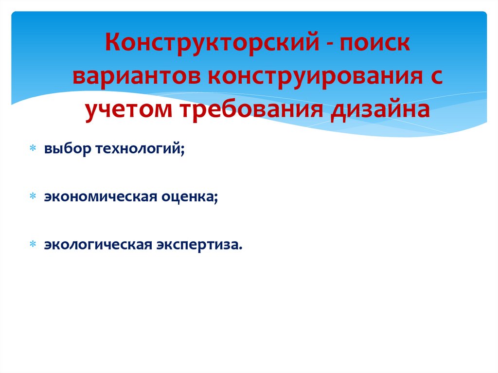Конструкторский - поисквариантов конструирования с
