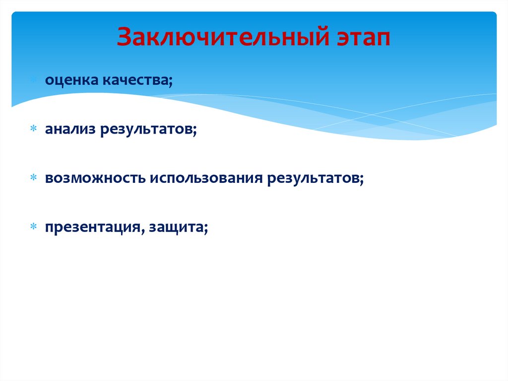 Заключительный этапоценка качества;