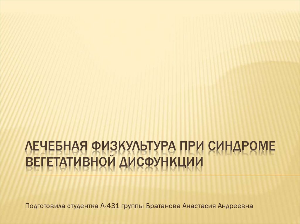 ЛЕЧЕБНАЯ ФИЗКУЛЬТУРА ПРИ СИНДРОМЕВЕГЕТАТИВНОЙ ДИСФУНКЦИИ