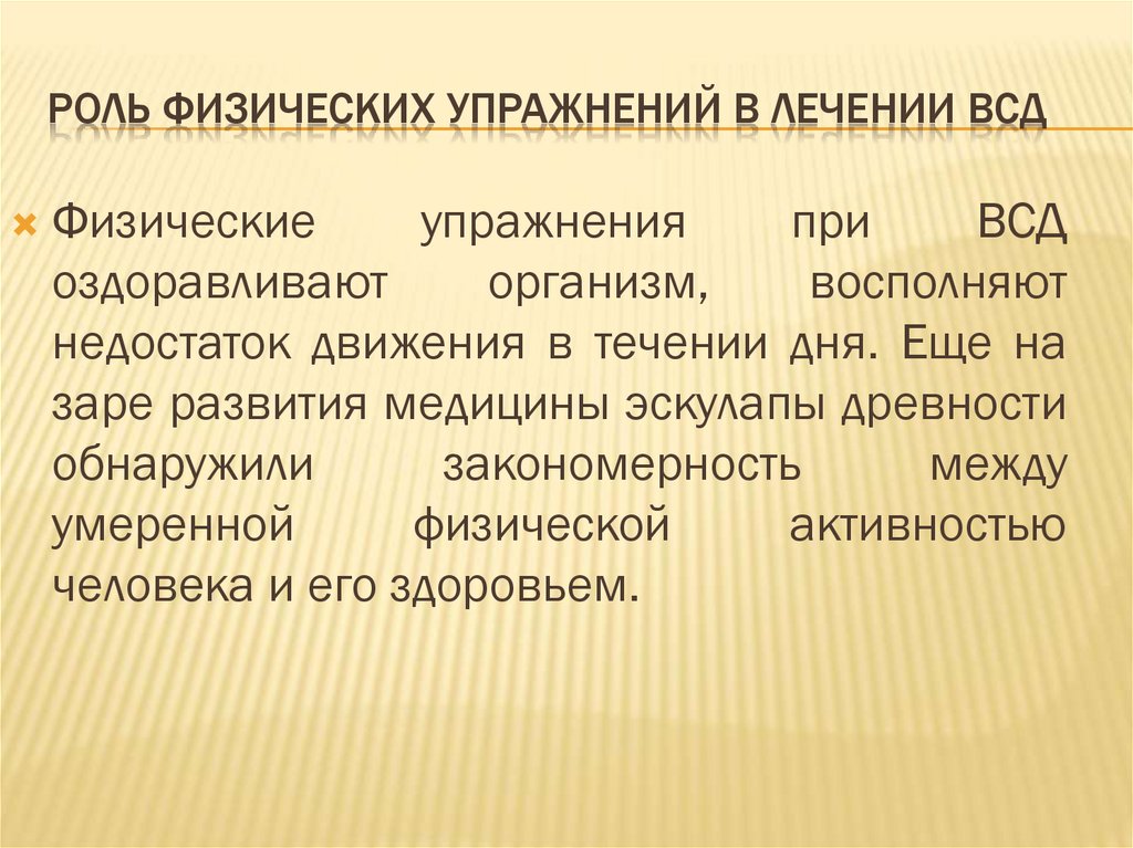 РОЛЬ ФИЗИЧЕСКИХ УПРАЖНЕНИЙ В ЛЕЧЕНИИ ВСДФизические