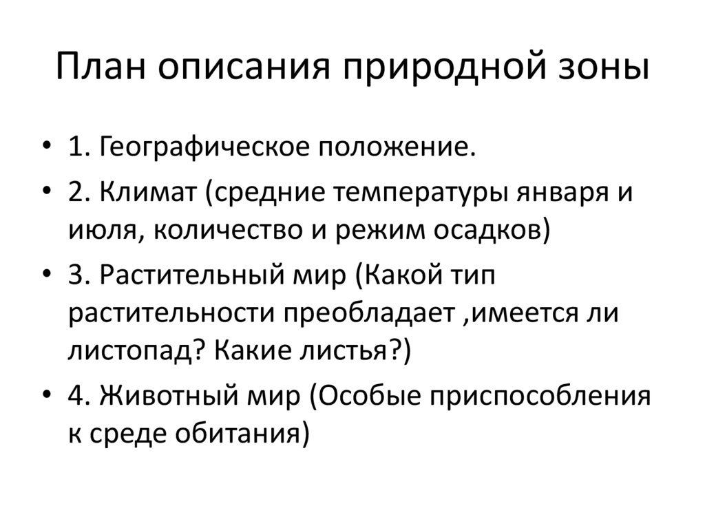 План описания природной зоны• 1. Географическое положение.