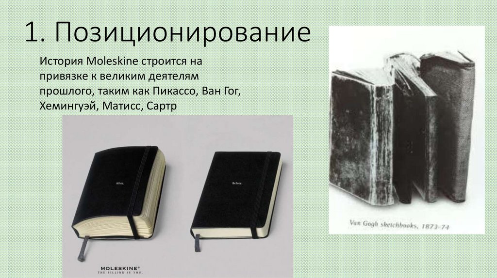 1. ПозиционированиеИстория Moleskine строится на