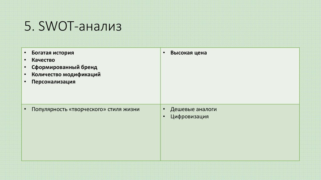 5. SWOT- и конкурентный анализ