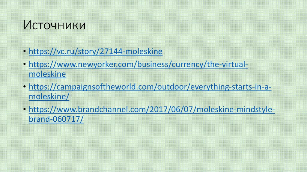 Источники• https://vc.ru/story/27144-moleskine