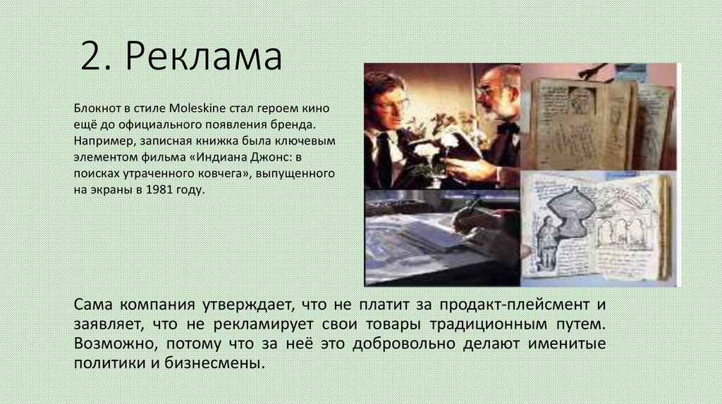 2. РекламаБлокнот в стиле Moleskine стал героем кино