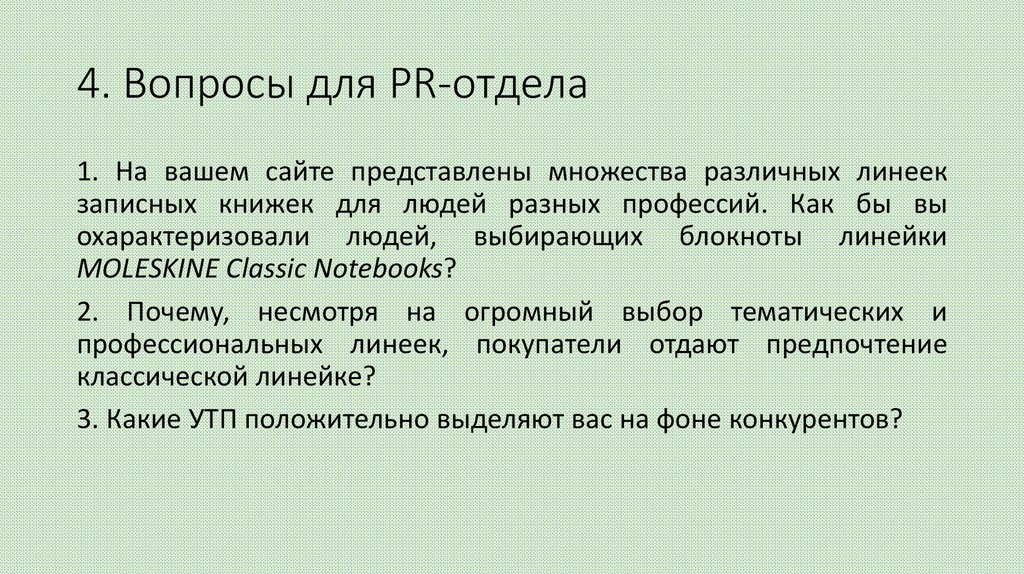 4. Вопросы для PR-отдела