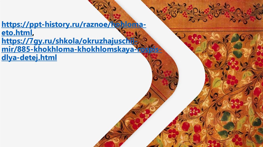 https://ppt-history.ru/raznoe/hohlomaeto.html,https://7gy.ru/shkola/okruzhajuschiimir/885-khokhloma-khokhlomskaya-rospisdlya-detej.html