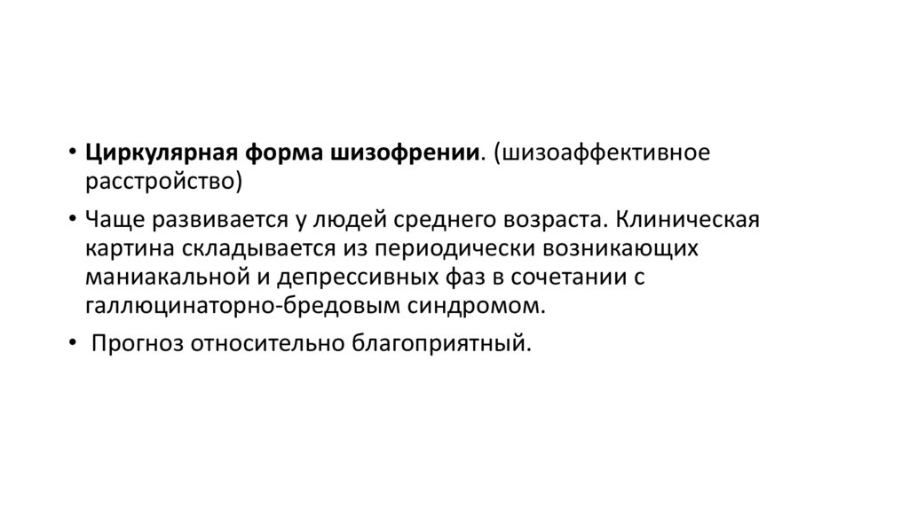 • Данная форма шизофрении имеет наиболее благоприятный прогноз.