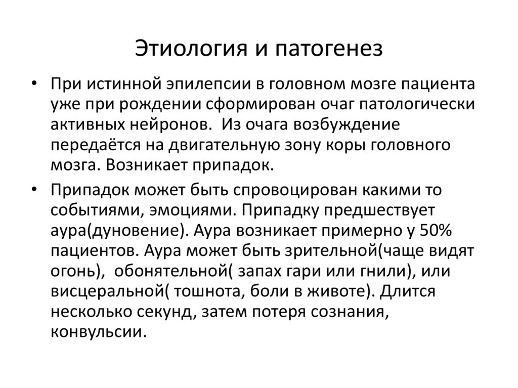 Этиология и патогенез• При истинной эпилепсии в головном мозге пациента