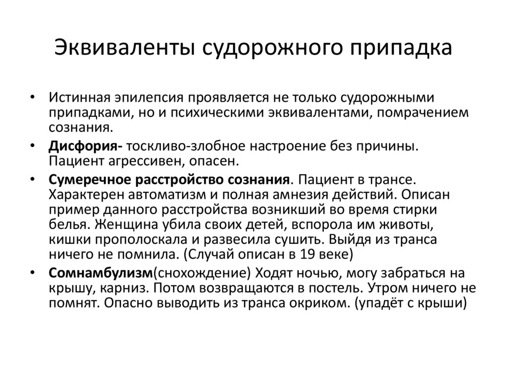 Эквиваленты судорожного припадка• Истинная эпилепсия проявляется не только судорожными