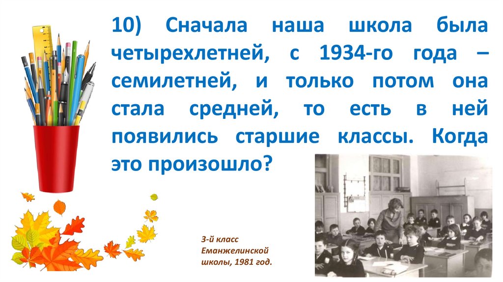 10) Сначала наша школа былачетырехлетней, с 1934-го года –