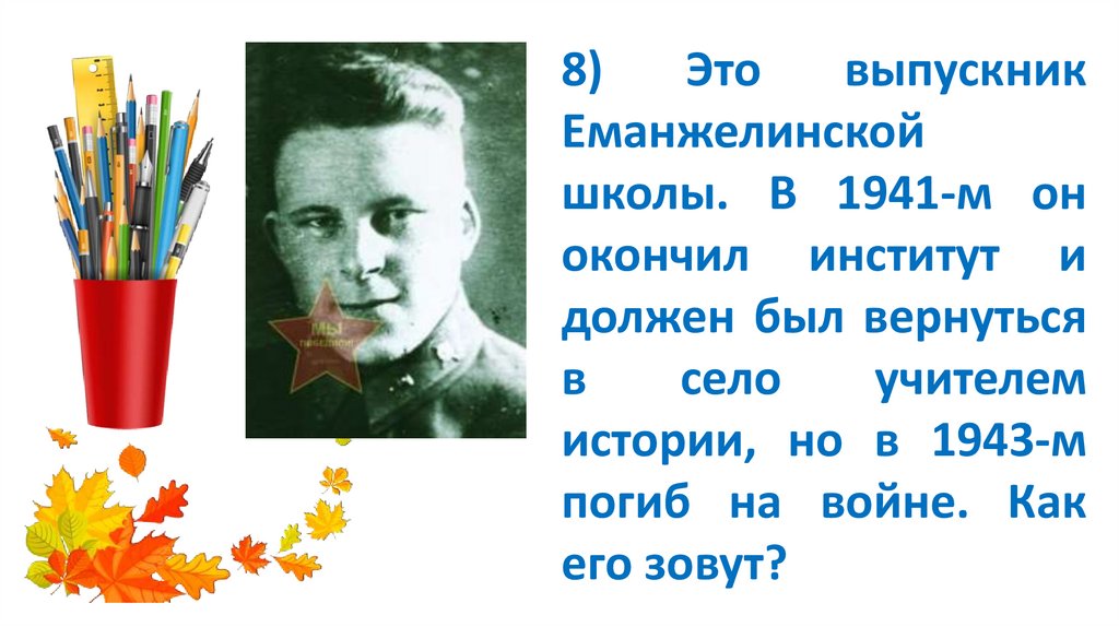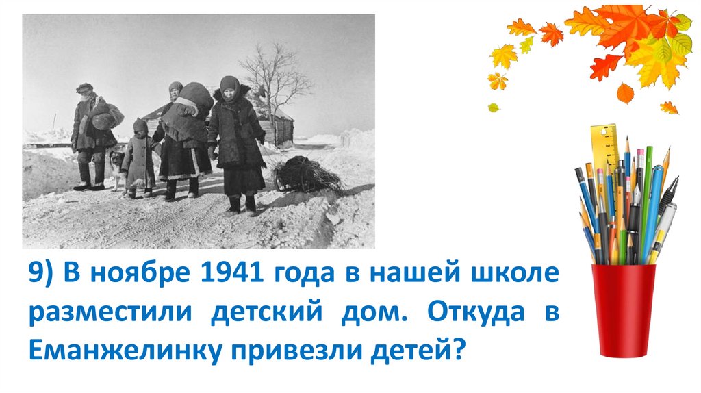 9) В ноябре 1941 года в нашей школеразместили детский дом. Откуда в