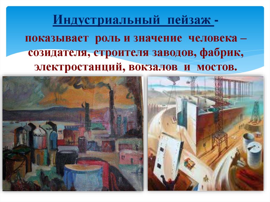 Индустриальный пейзаж показывает роль и значение человека –созидателя, строителя заводов, фабрик,