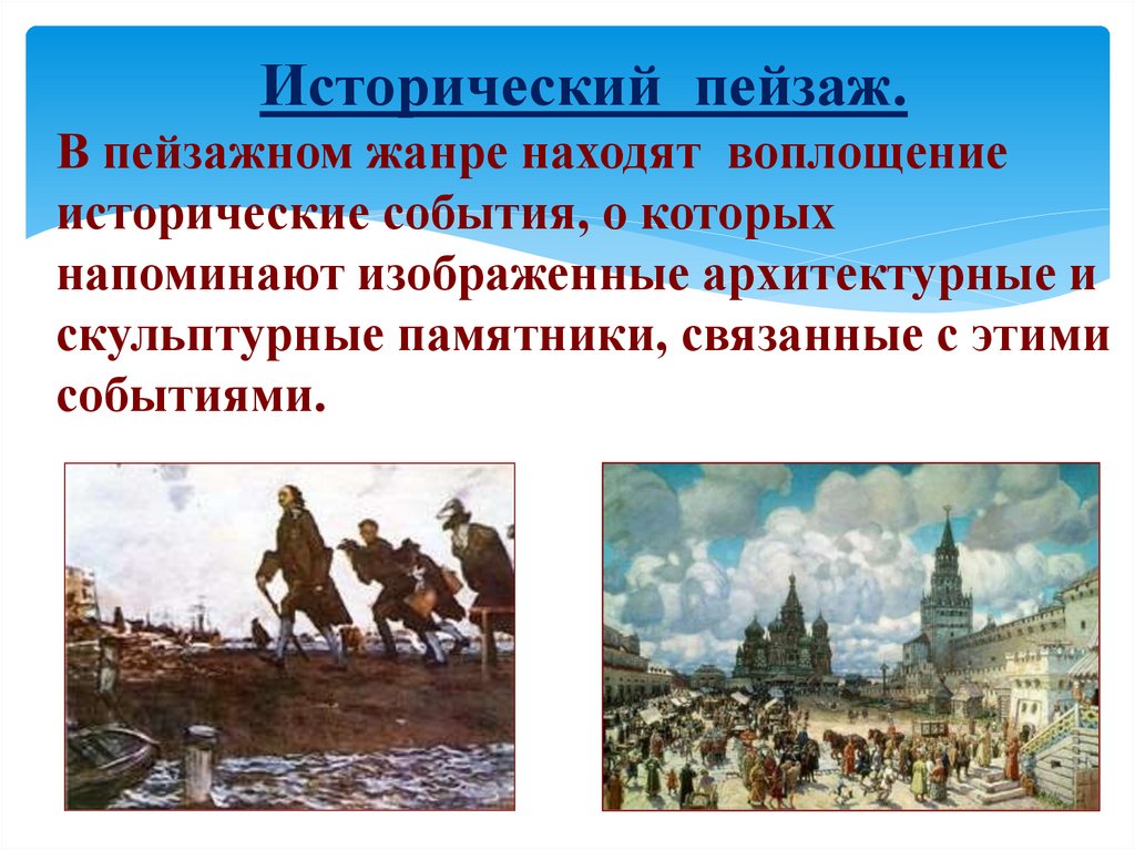 Исторический пейзаж.В пейзажном жанре находят воплощение