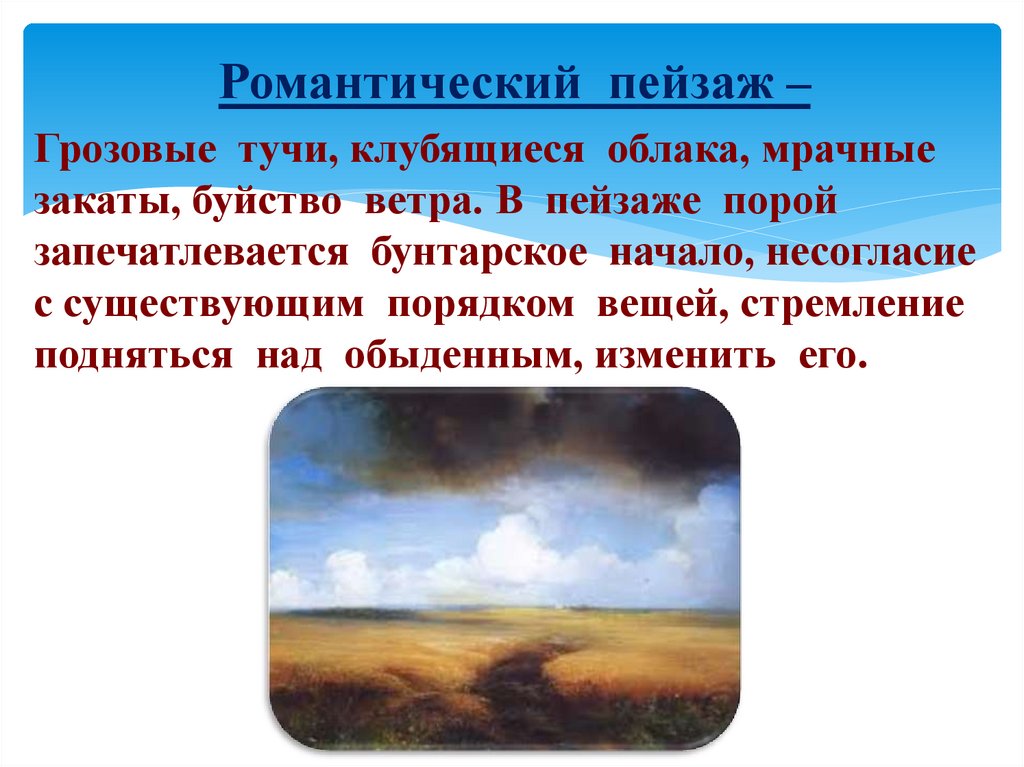 Пейзаж настроенияВ нём отражены чувства тоски, грусти или