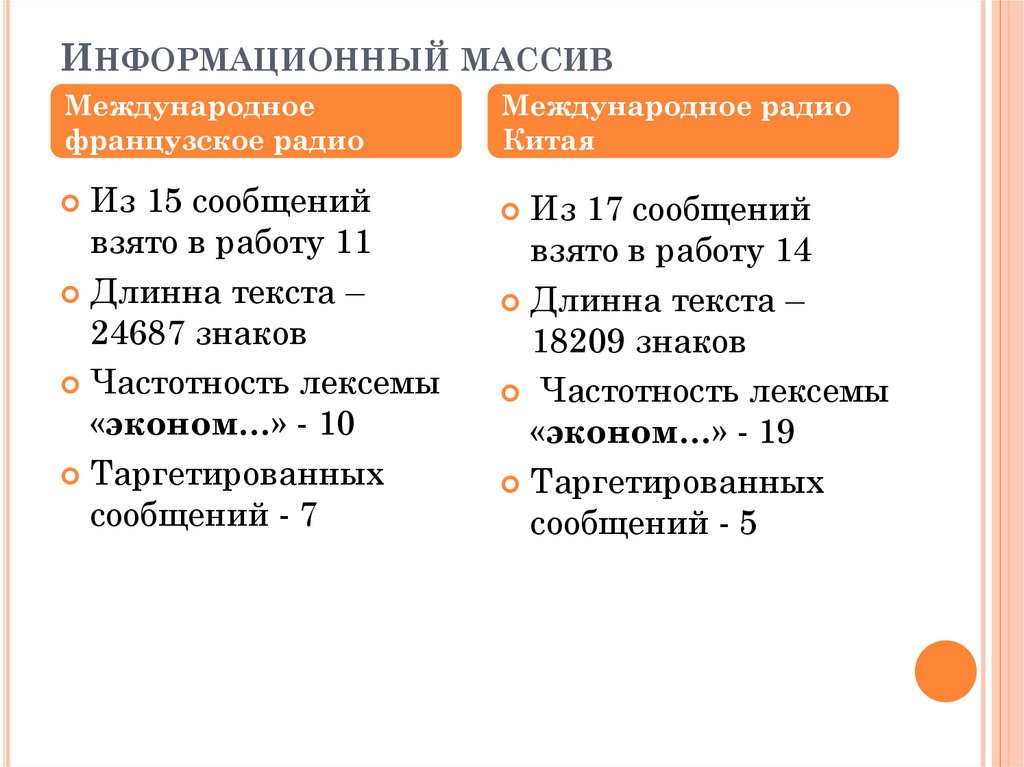 ИНФОРМАЦИОННЫЙ МАССИВМеждународное