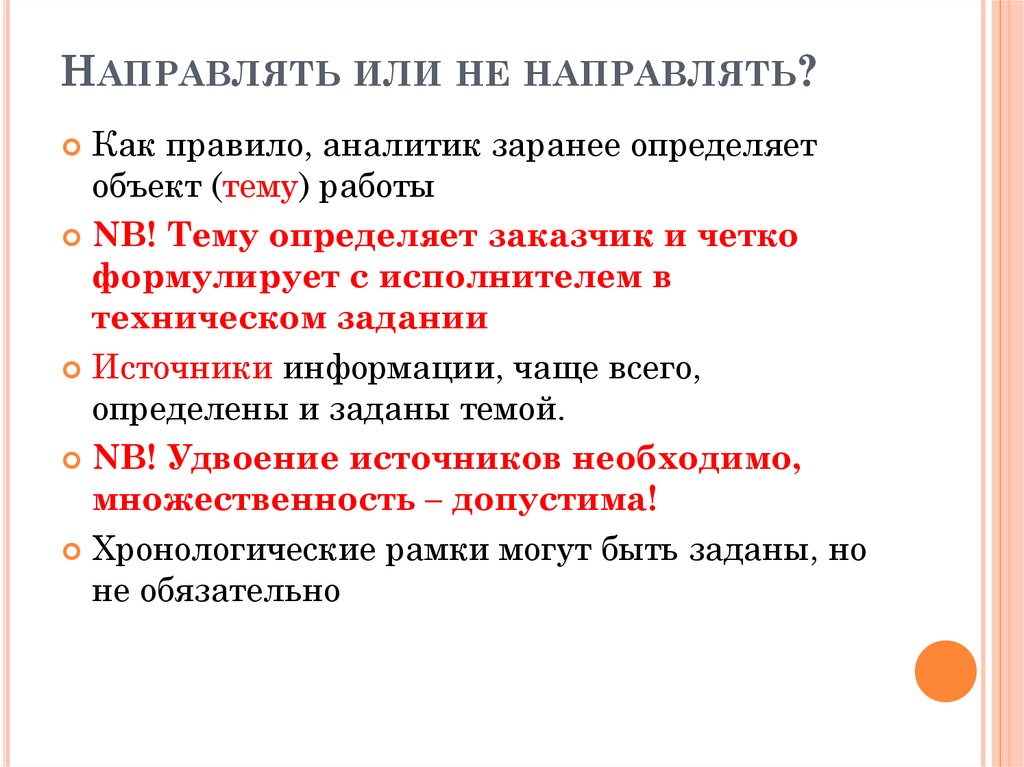 НАПРАВЛЯТЬ ИЛИ НЕ НАПРАВЛЯТЬ?Как правило, аналитик заранее определяет