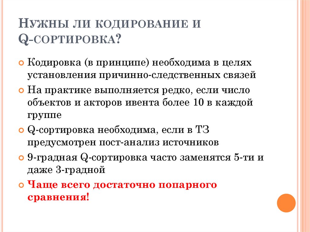 НУЖНЫ ЛИ КОДИРОВАНИЕ ИQ-СОРТИРОВКА?