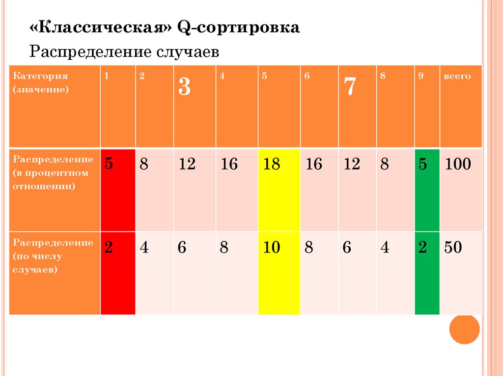 «Классическая» Q-сортировкаРаспределение случаев