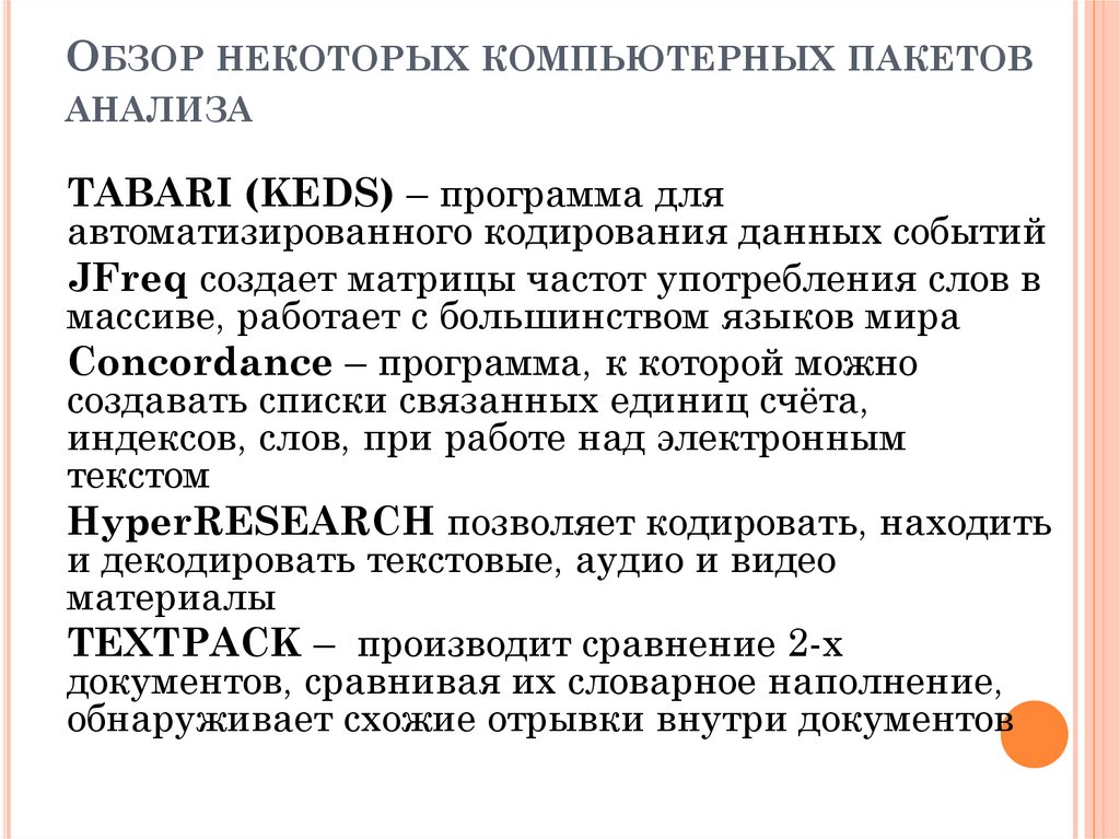 ОБЗОР НЕКОТОРЫХ КОМПЬЮТЕРНЫХ ПАКЕТОВАНАЛИЗА