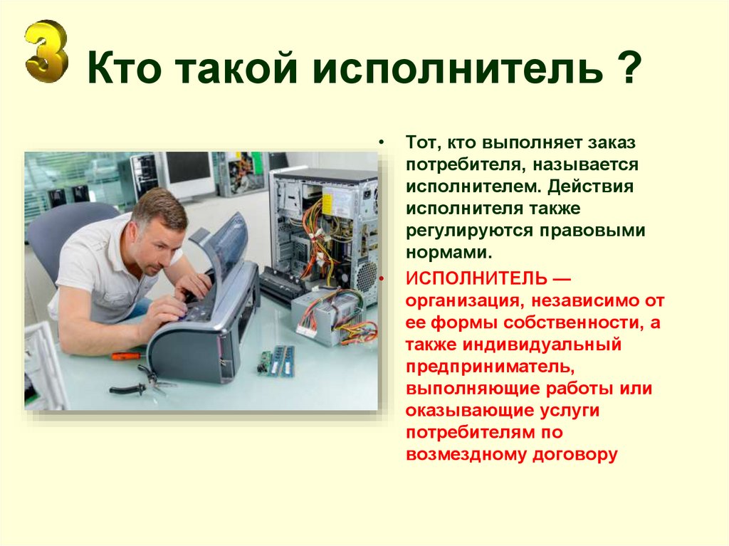 Кто такой исполнитель ?Тот, кто выполняет заказ