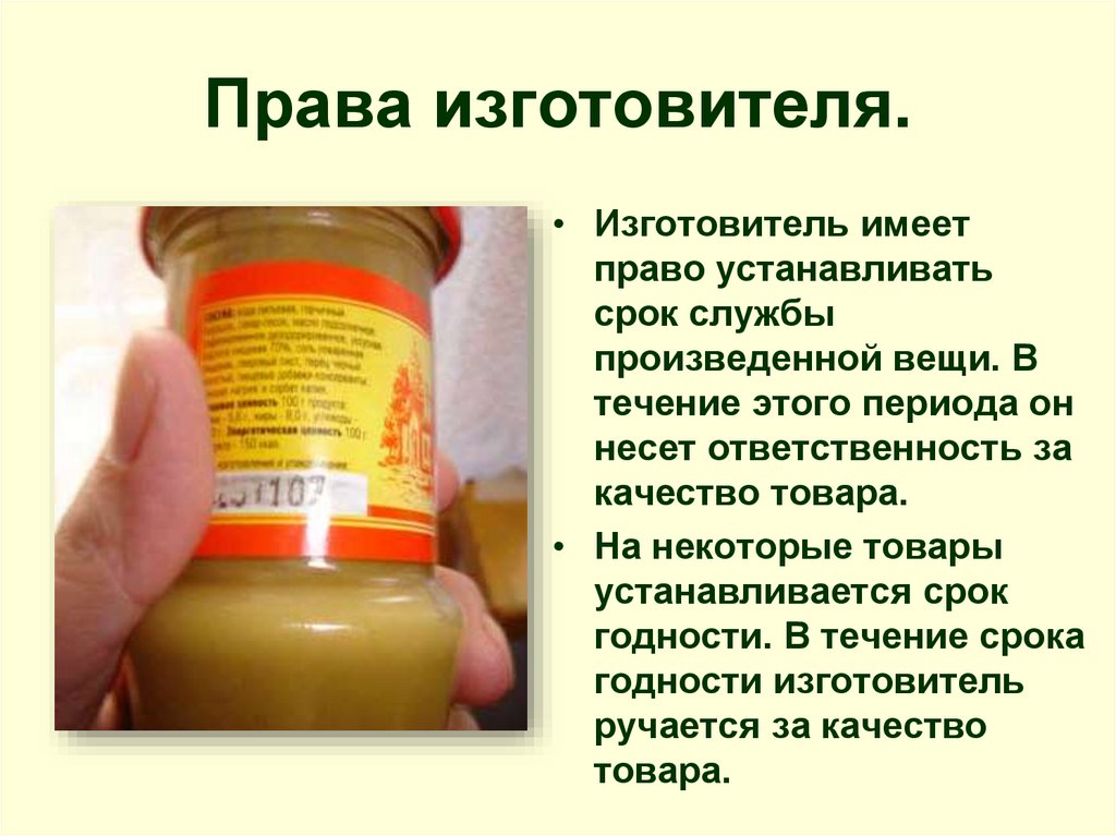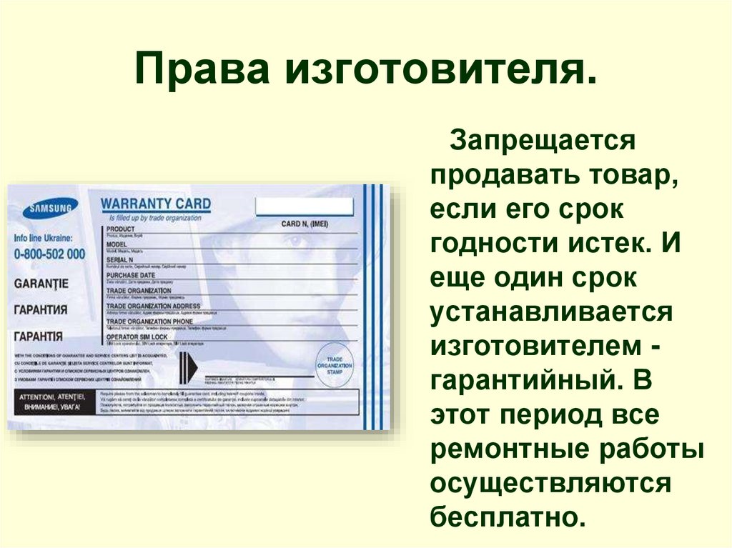 Права изготовителя.• Изготовитель имеет