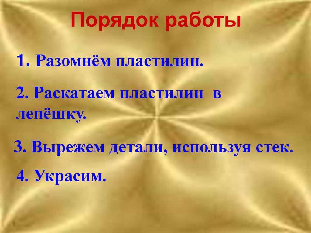 Порядок работы1. Разомнём пластилин.