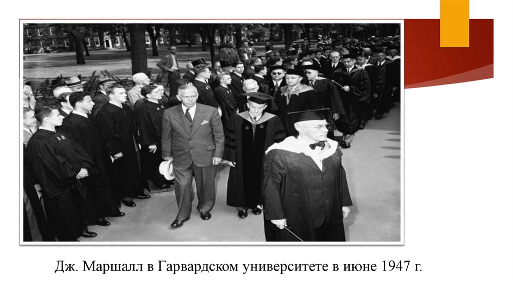 Дж. Маршалл в Гарвардском университете в июне 1947 г.12.