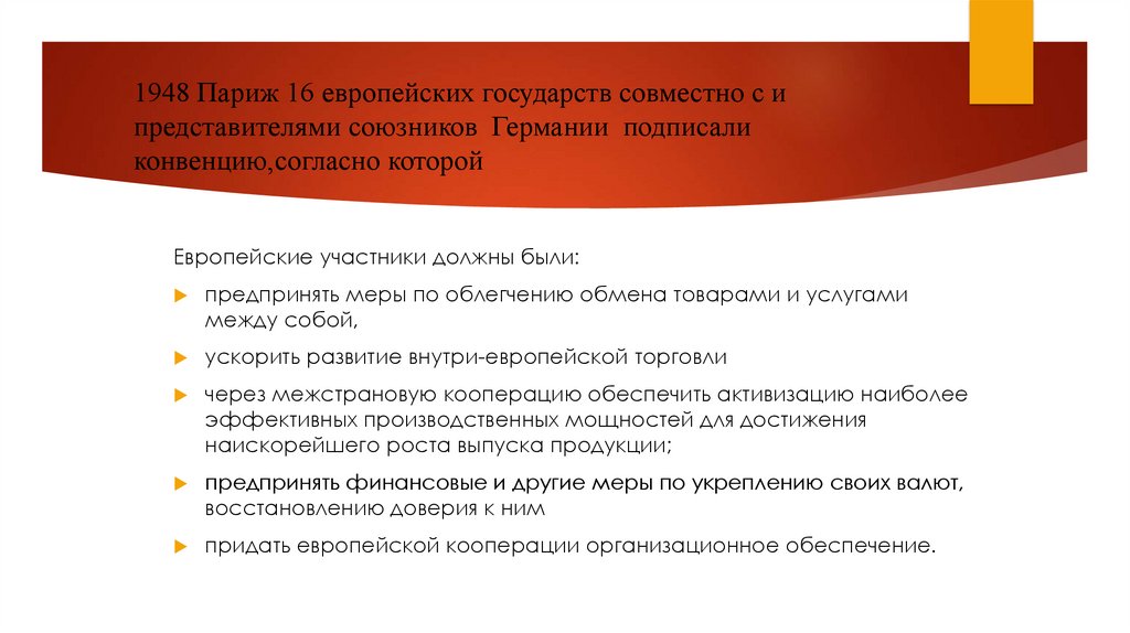 1948 Париж 16 европейских государств совместно с ипредставителями союзников Германии подписали