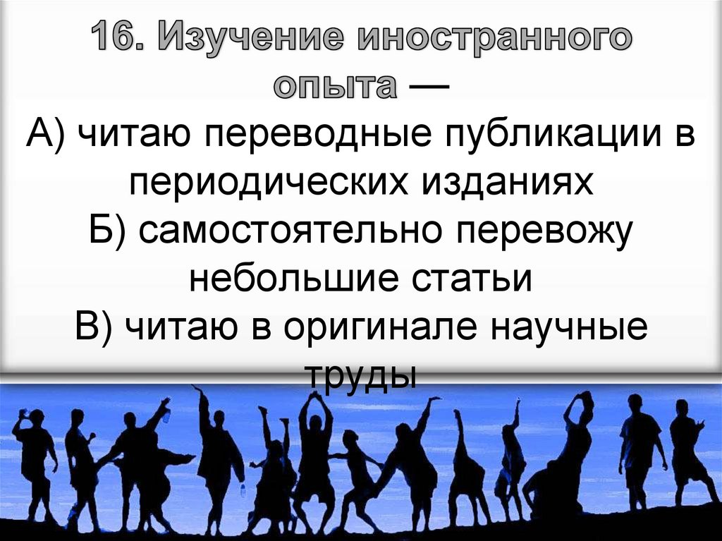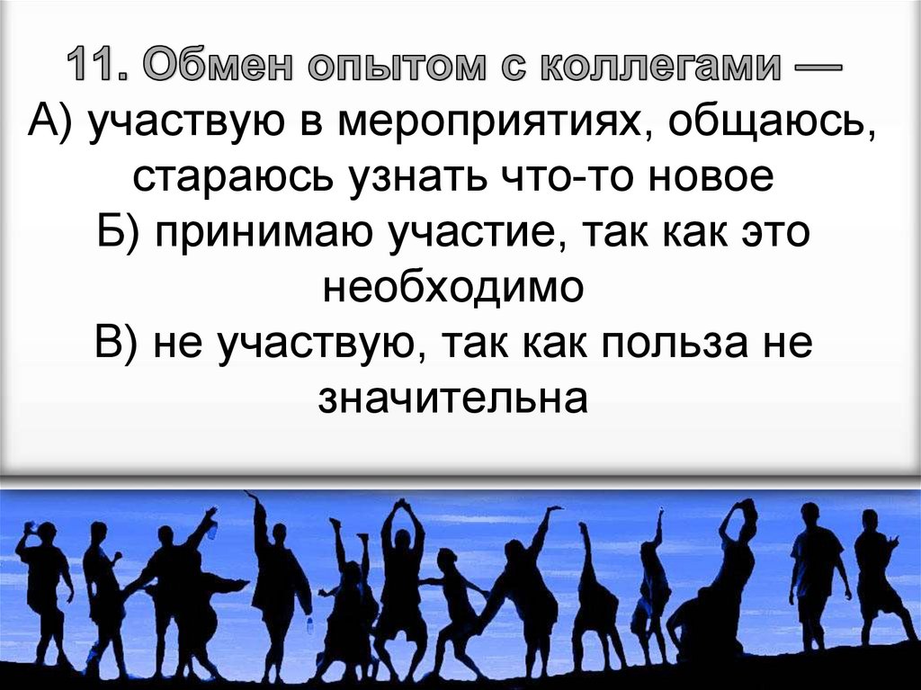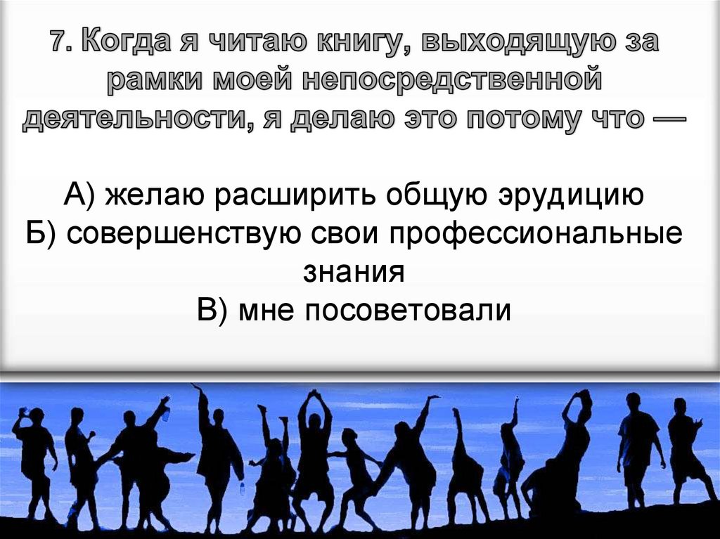 А) желаю расширить общую эрудициюБ) совершенствую свои профессиональные