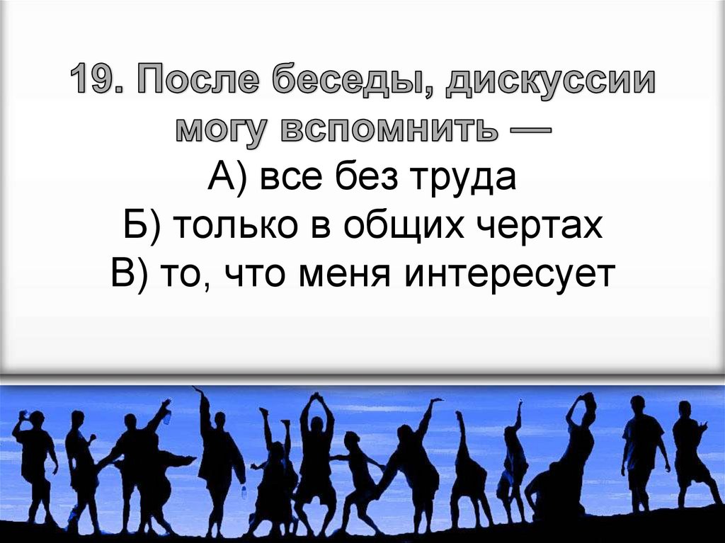 А) участвую в мероприятиях, общаюсь,стараюсь узнать что-то новое