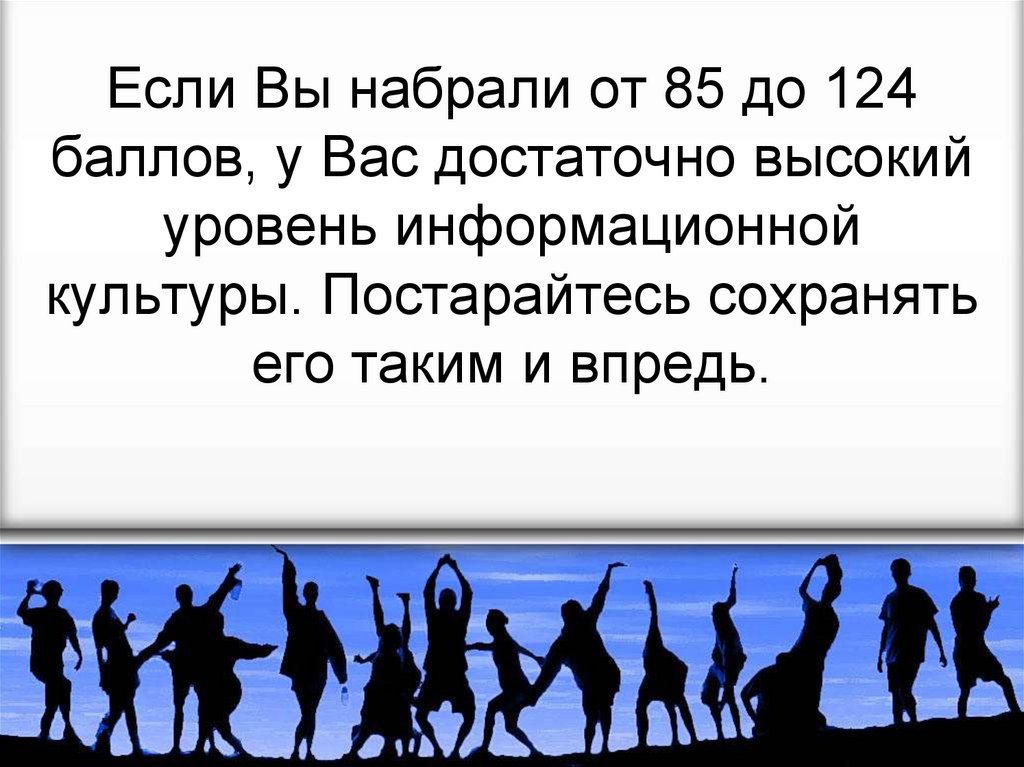 Если Вы набрали от 85 до 124баллов, у Вас достаточно высокий