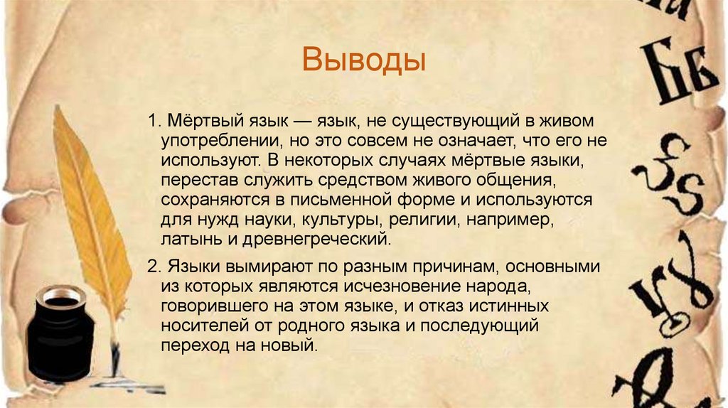 Выводы3. Если язык признан мёртвым, это вовсе не означает, что