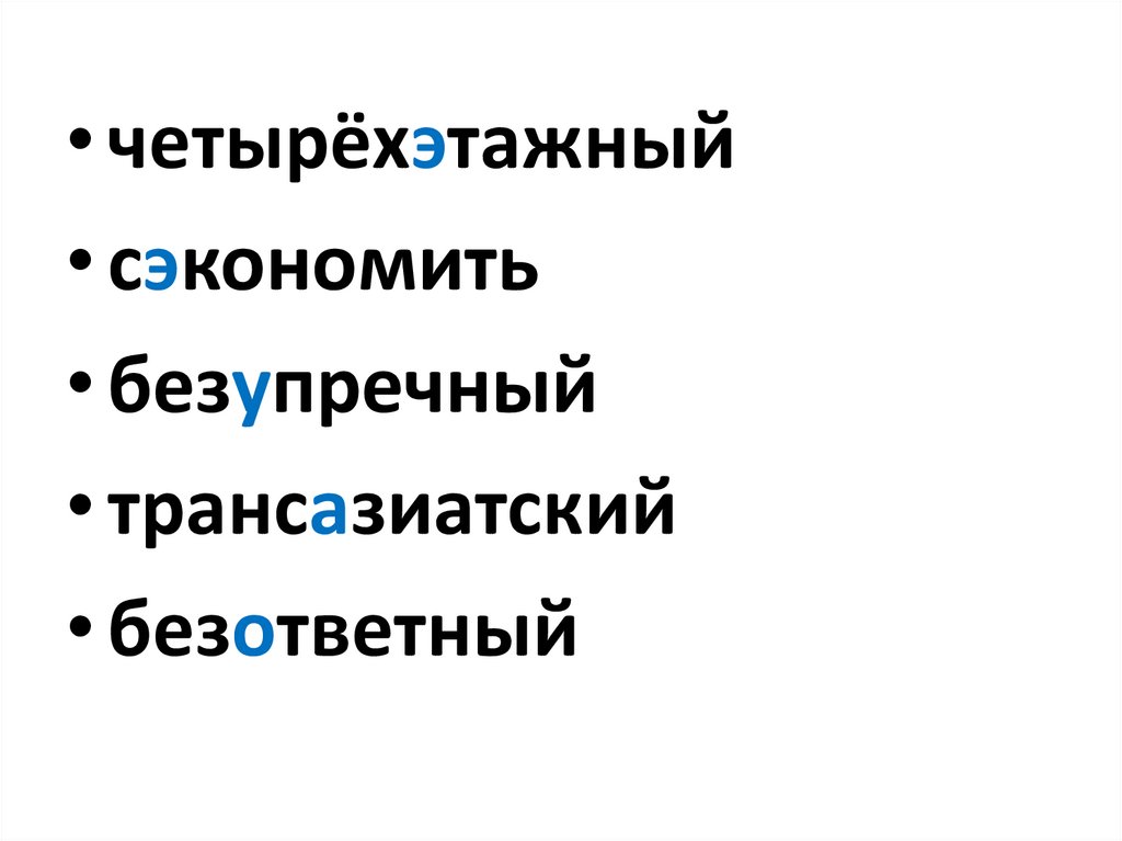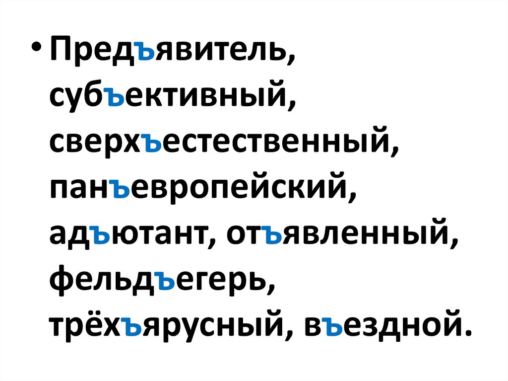 • Пред..явитель, сер..ёзный, п..еса,суб..ективный, четырёх..этажный,