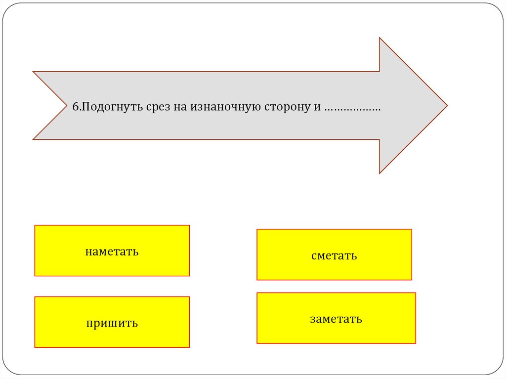 6.Подогнуть срез на изнаночную сторону и ………………наметать