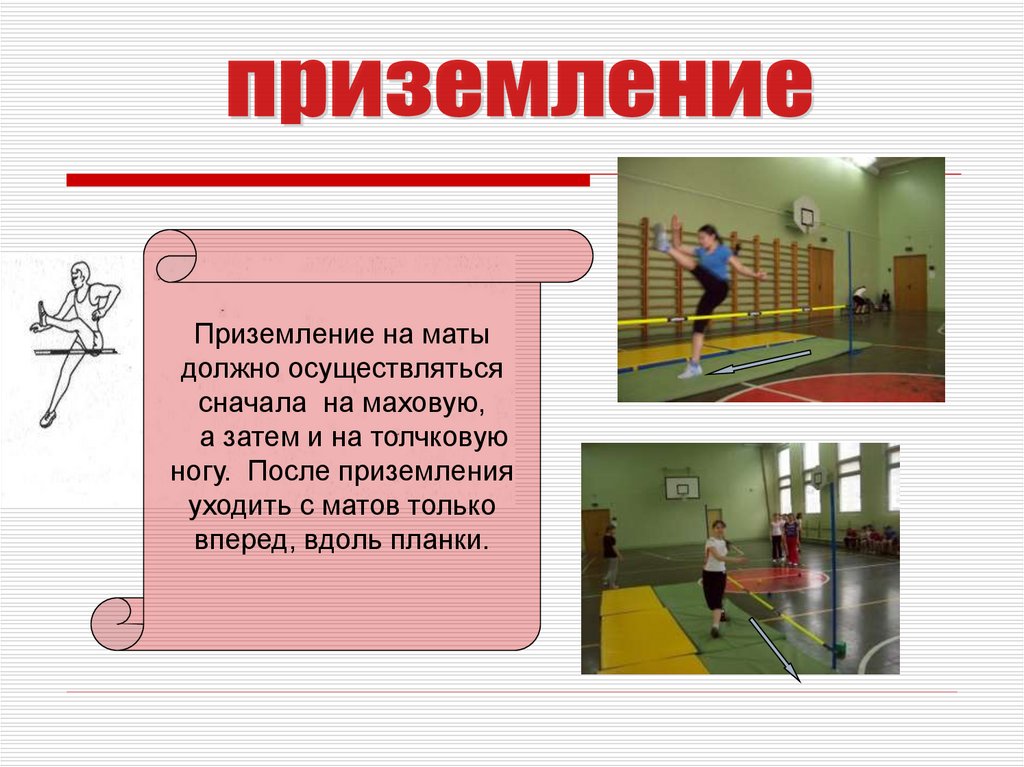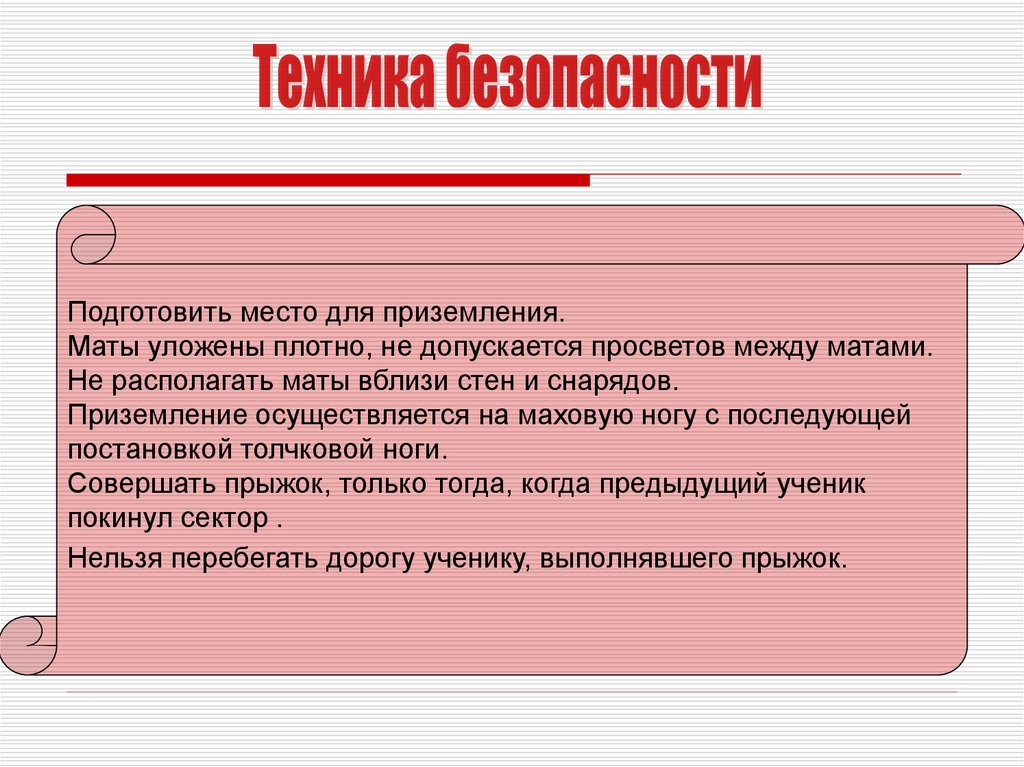 Подготовить место для приземления.Маты уложены плотно, не допускается просветов между матами.
