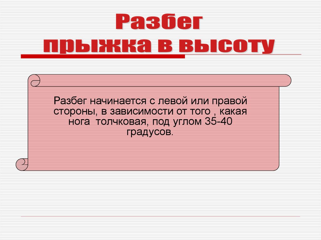 Разбег начинается с левой или правойстороны, в зависимости от того , какая
