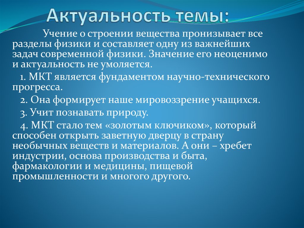 Учение о строении вещества пронизывает всеразделы физики и составляет одну из важнейших