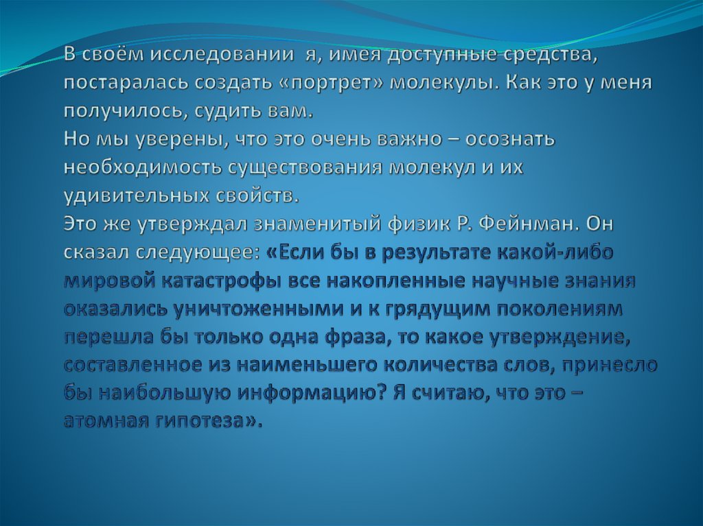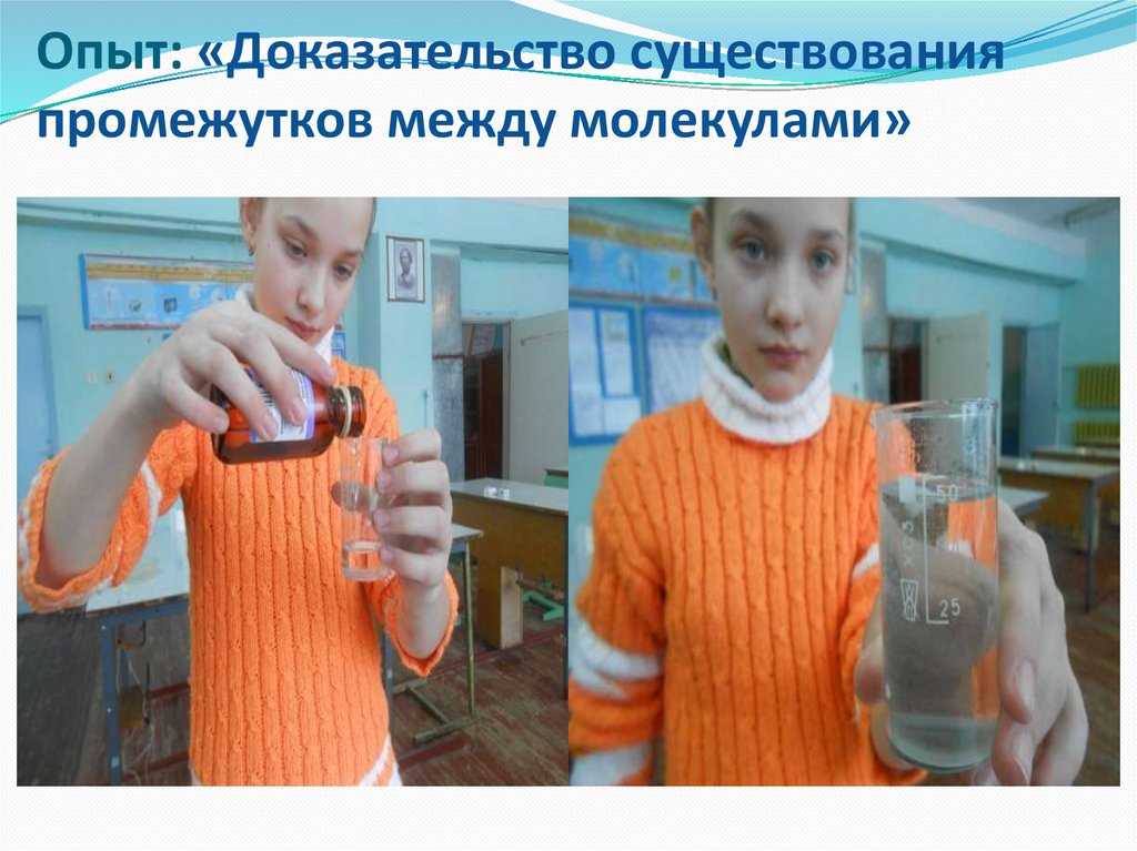 Опыт: «Доказательство существованияпромежутков между молекулами»