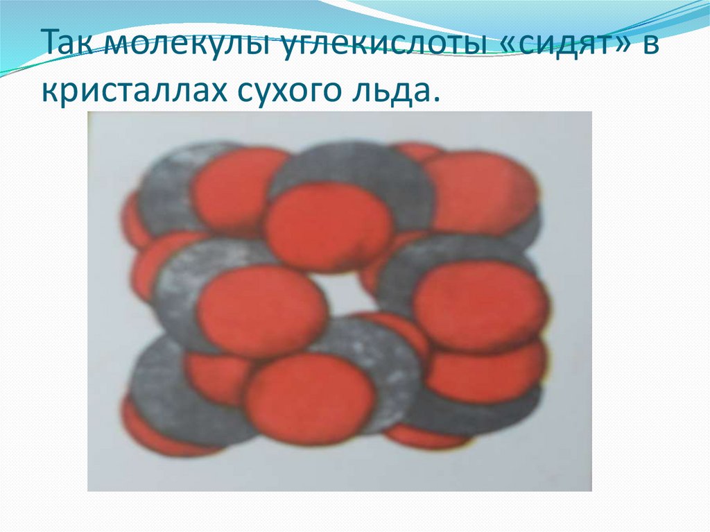 Так молекулы углекислоты «сидят» вкристаллах сухого льда.