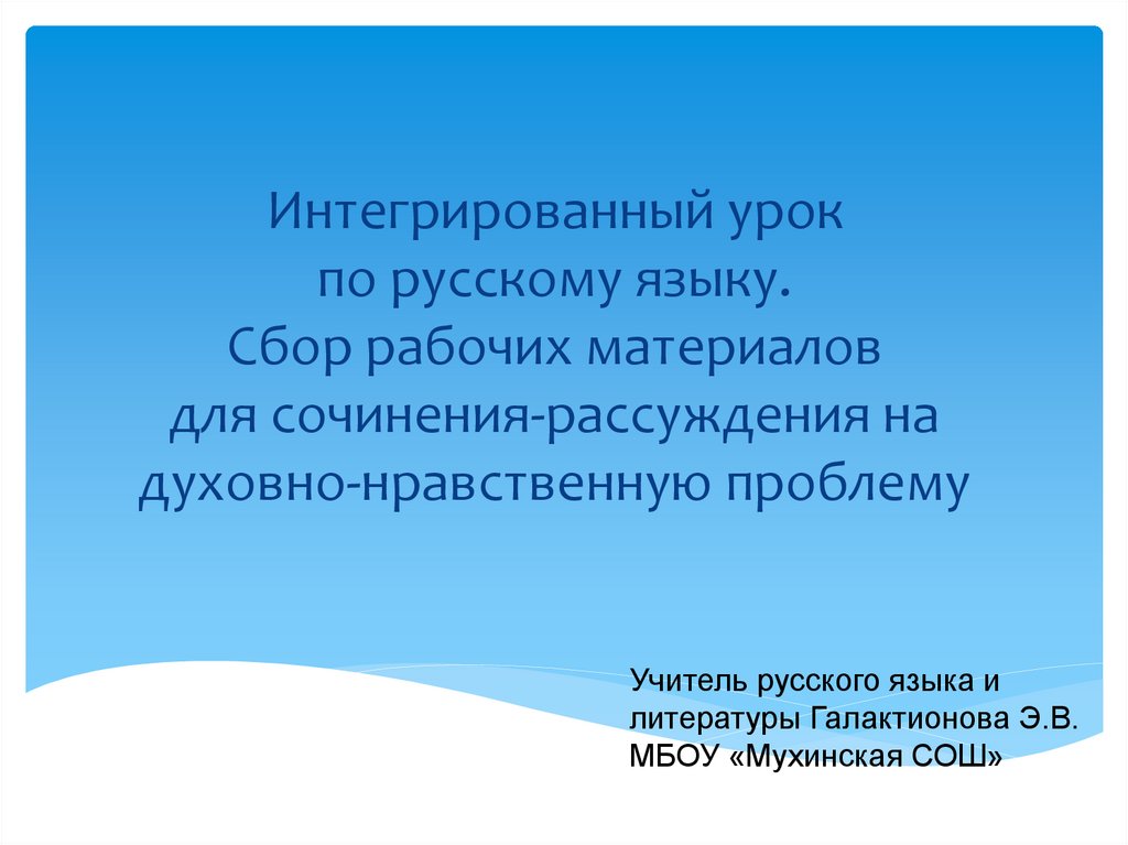 1. Интегрированный урок по русскому языку. Сбор рабочих материалов для сочинения-рассуждения на духовно-нравственную проблему