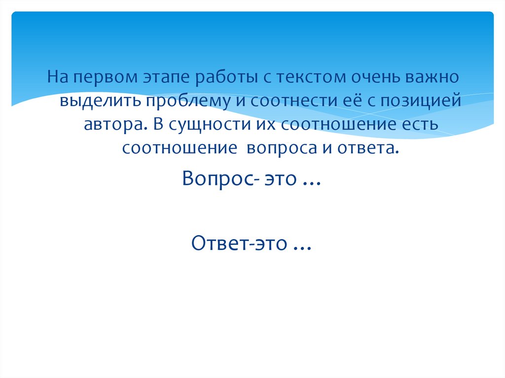 На первом этапе работы с текстом очень важновыделить проблему и соотнести её с позицией