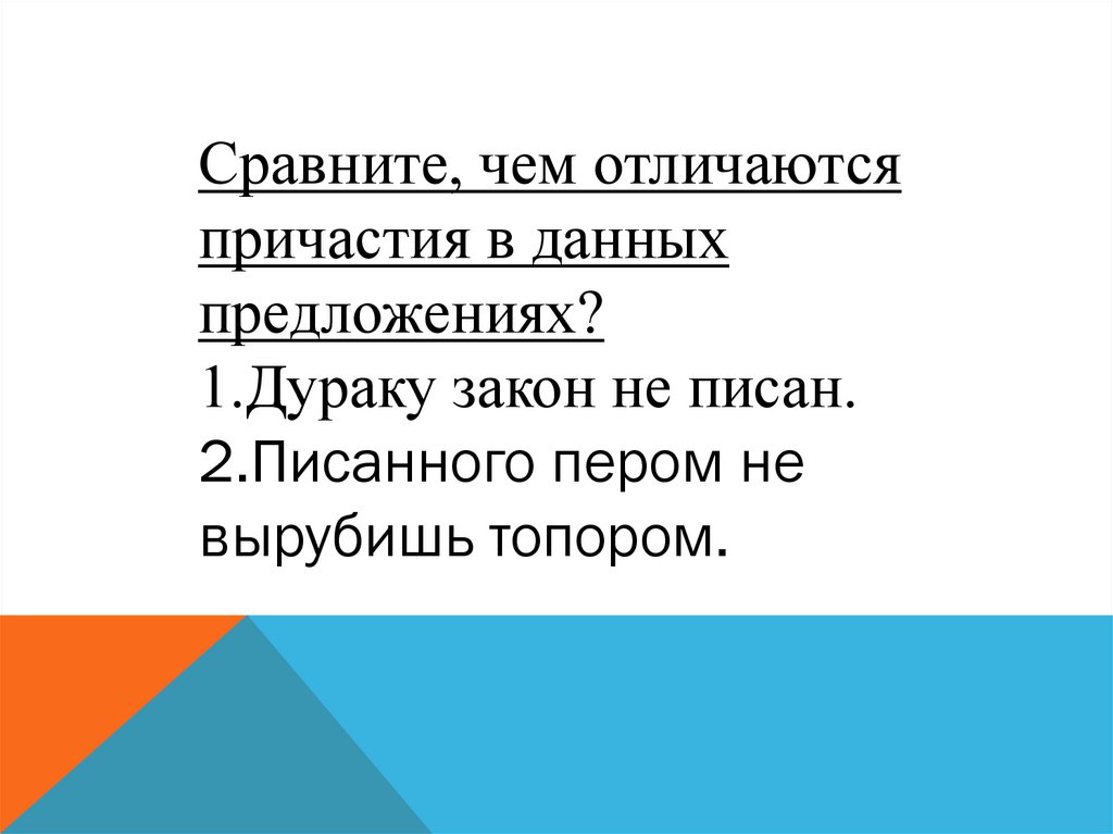 Сравните, чем отличаютсяпричастия в данных