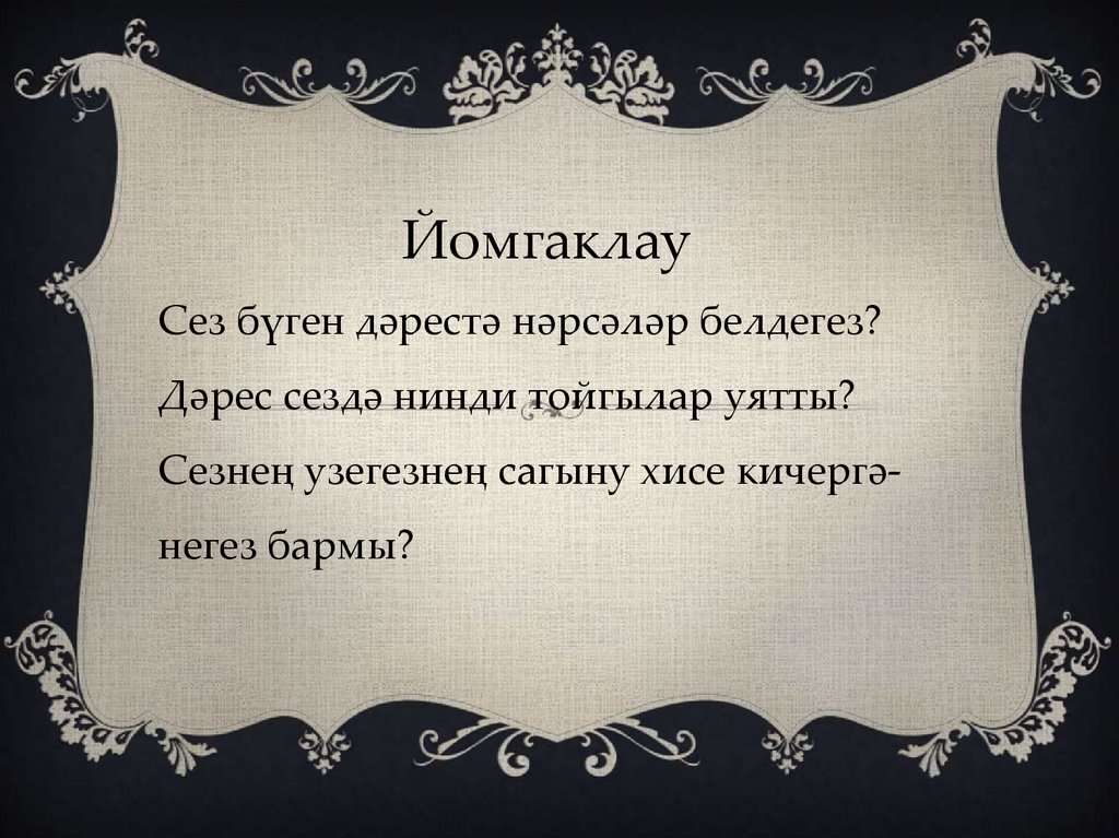 ЙомгаклауСез бүген дәрестә нәрсәләр белдегез?