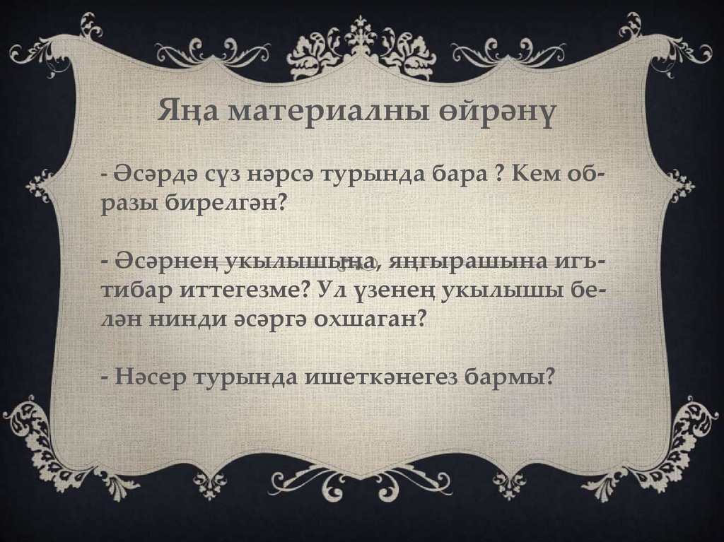 - Әсәрнең укылышына, яңгырашына игътибар иттегезме? Ул үзенең укылышы белән нинди әсәргә охшаган?