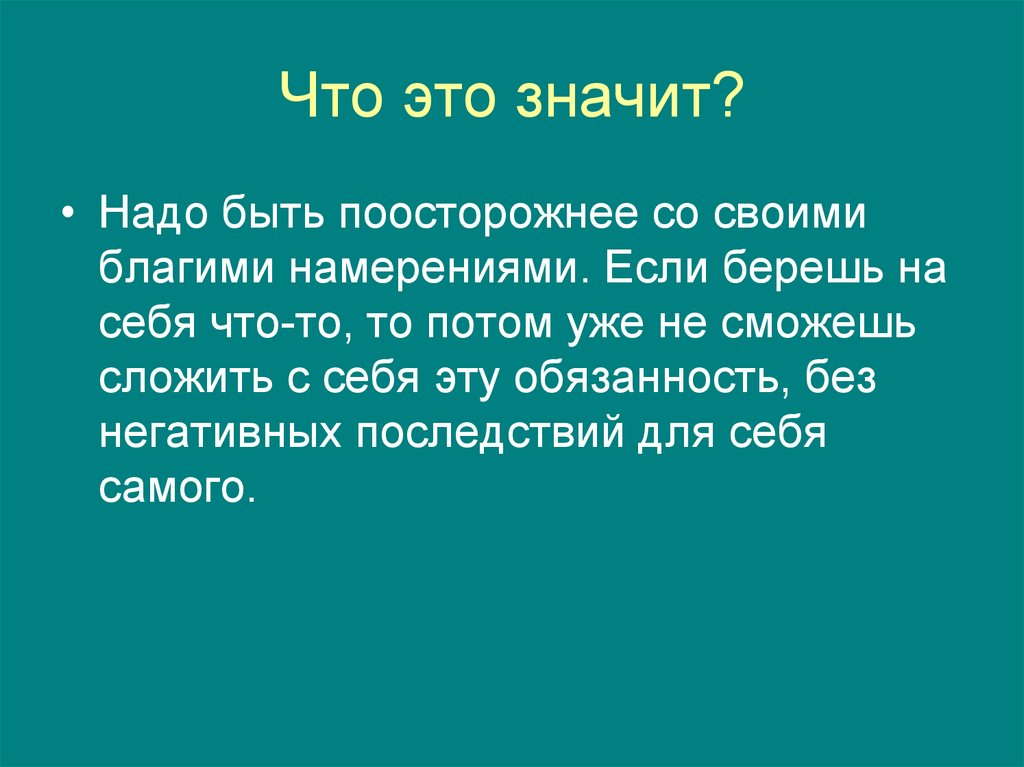 Что это значит?• Надо быть поосторожнее со своими