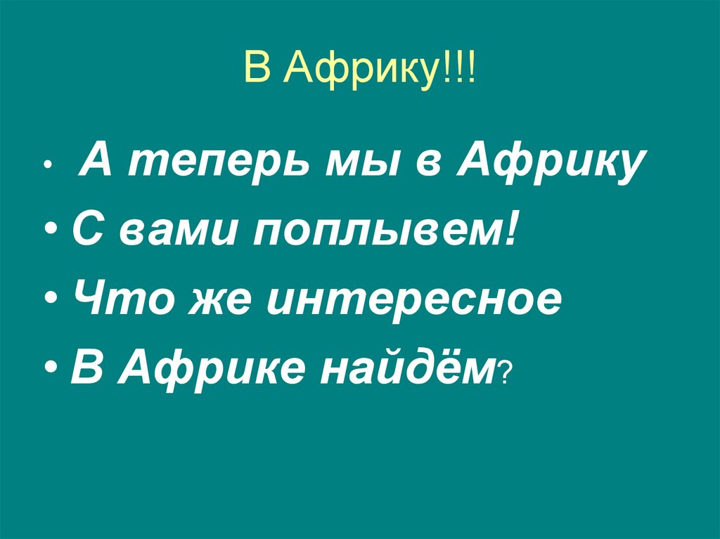 В Африку!!!А теперь мы в Африку