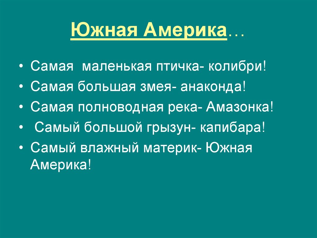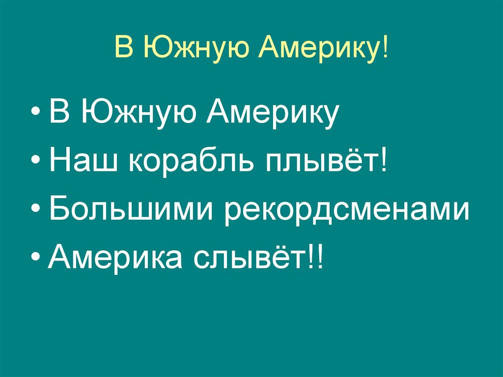 В Южную Америку!• В Южную Америку
