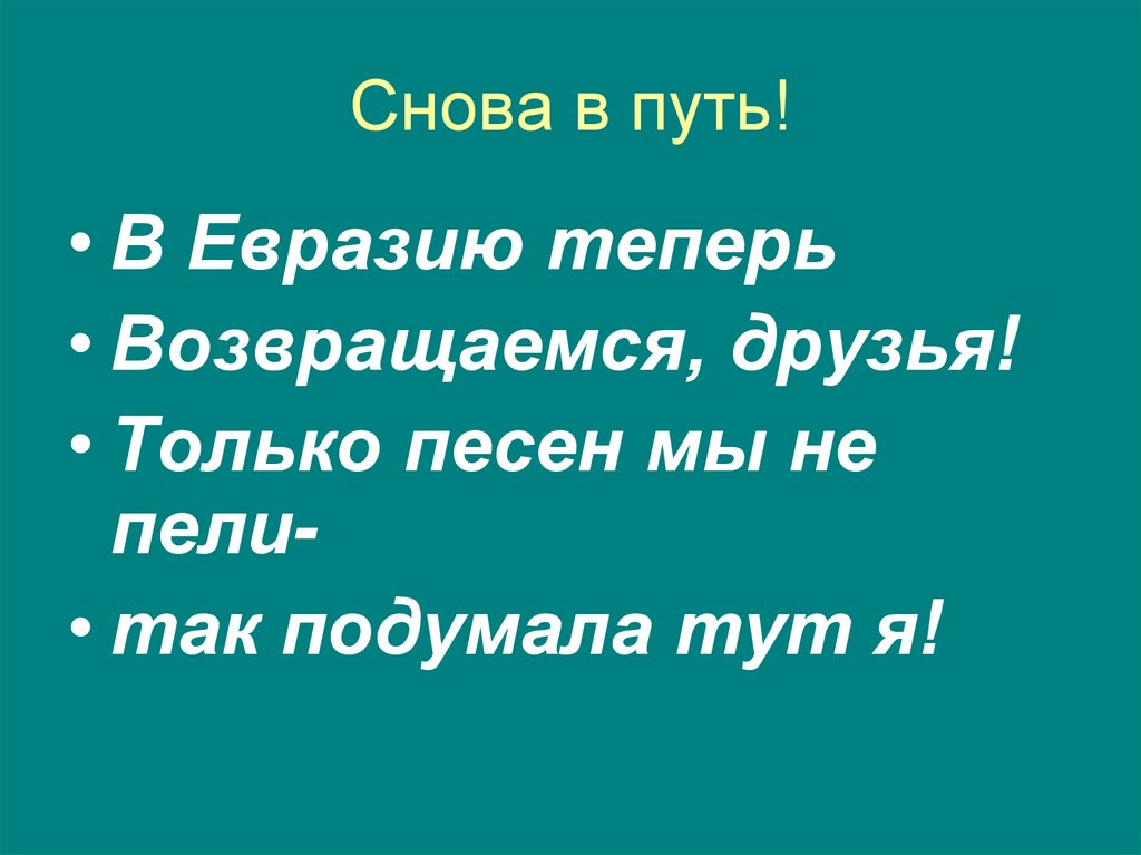 Снова в путь!• В Евразию теперь