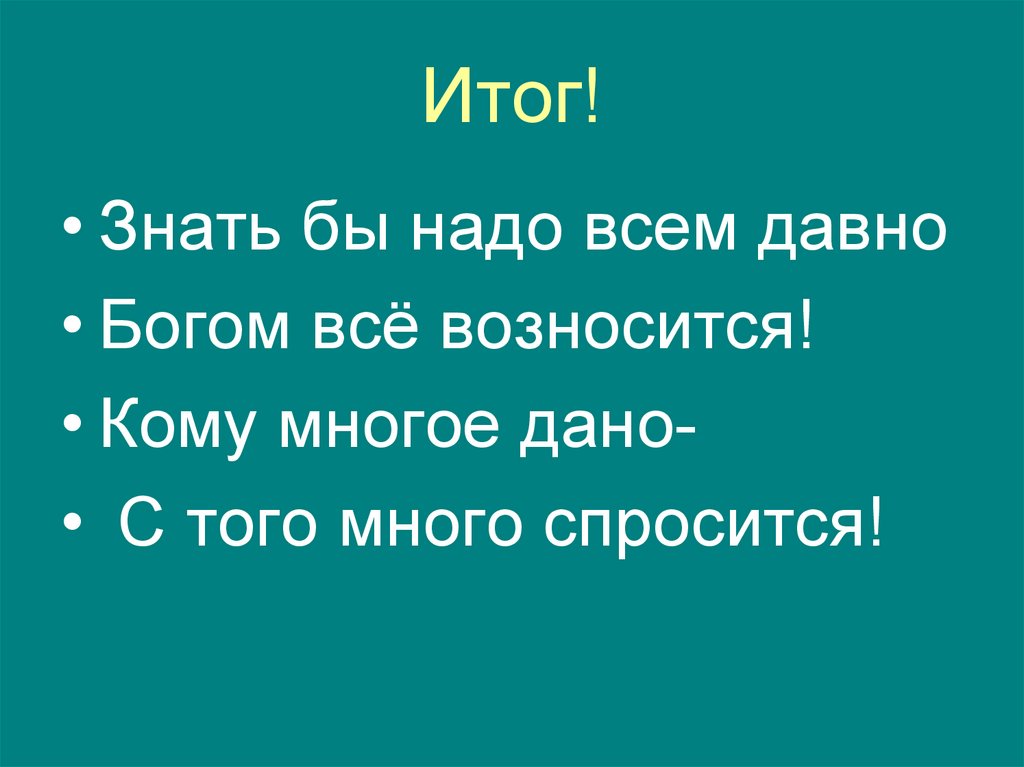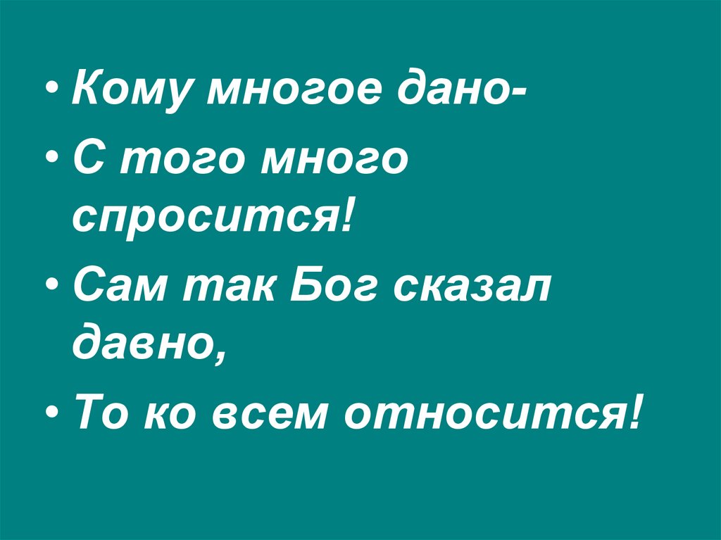 • Кому многое дано• С того многоспросится!